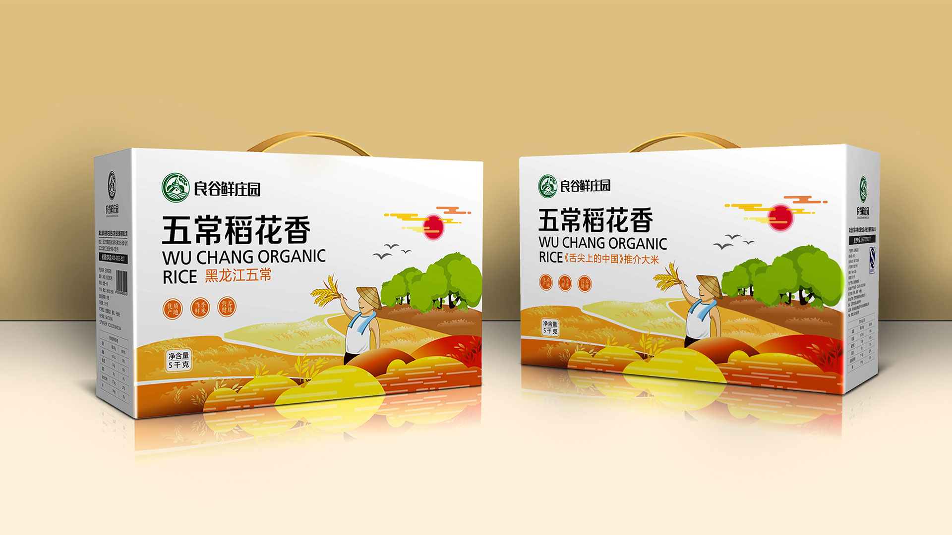 三采用符合目標人群喜歡的手繪插畫表達五常大米生長的場景,體現出生態、自然和豐收的喜悅。