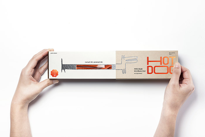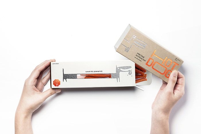 這是David Hovhannisyan設(shè)計(jì)的寵物狗香腸包裝,品牌文字形象生動(dòng),很好的體現(xiàn)了香腸被拉出來的不斷變長的感受,同時(shí)兼具識別性,充滿趣味性。