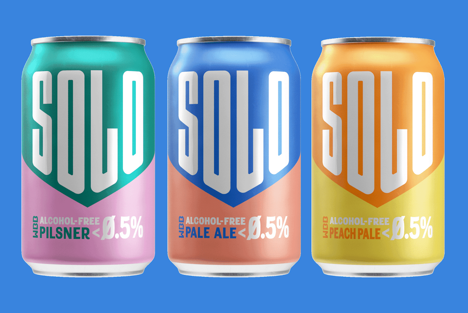 Solo無酒精啤酒包裝,三個關鍵詞運動感,下箭頭,對比色。抓住了人們心智厭惡混亂的特點,簡潔明了的描述了產品賣點無酒精淡啤,通過向下的箭頭不斷暗示消費者酒精度數已經下降到零,對比色區分信息,增強識別性。